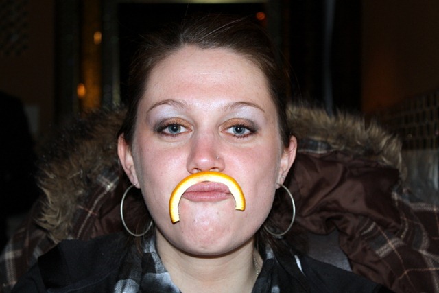 While we waited for the new sweet potato roll to be made, Kim and I had a little too much fun with our fruit rinds, proving that we will always be twenty five years old at heart.