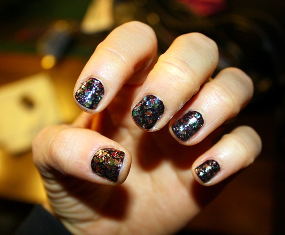 On Saturday afternoon, my bestie Kim and I headed out to get manicures and pedicures, something which my hands and feet definitely needed. I ended up choosing a black cherry color (Lincoln Park after Dark?) topped with some sparkles for festivities sake. I ended up loving the final product!